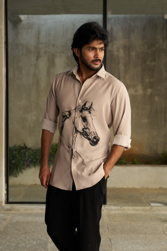 Beige shirt with black horse hand painted design
