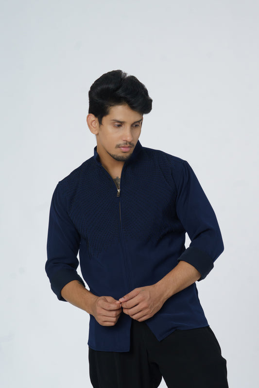 Zipper shirt with black lines hand embroidery