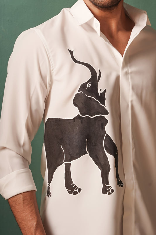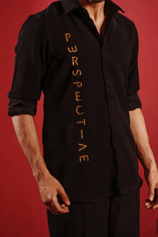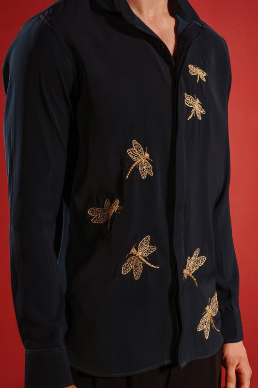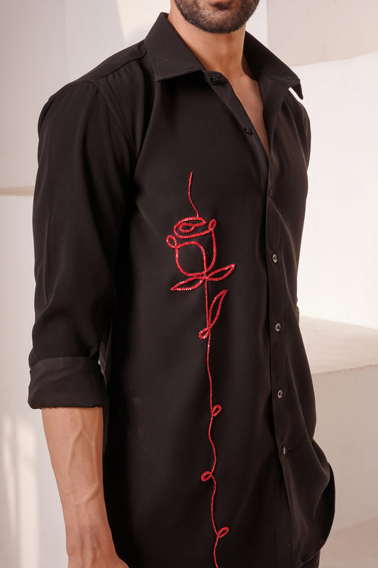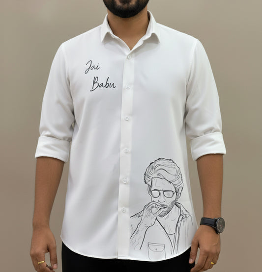 Mahesh Babu's Jai Babu shirt- black zipper shirt with white hand embroidery