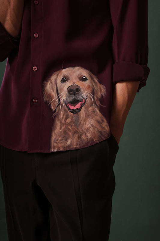 Golden Retriever - Dog Hand Painted Burgundy Shirt