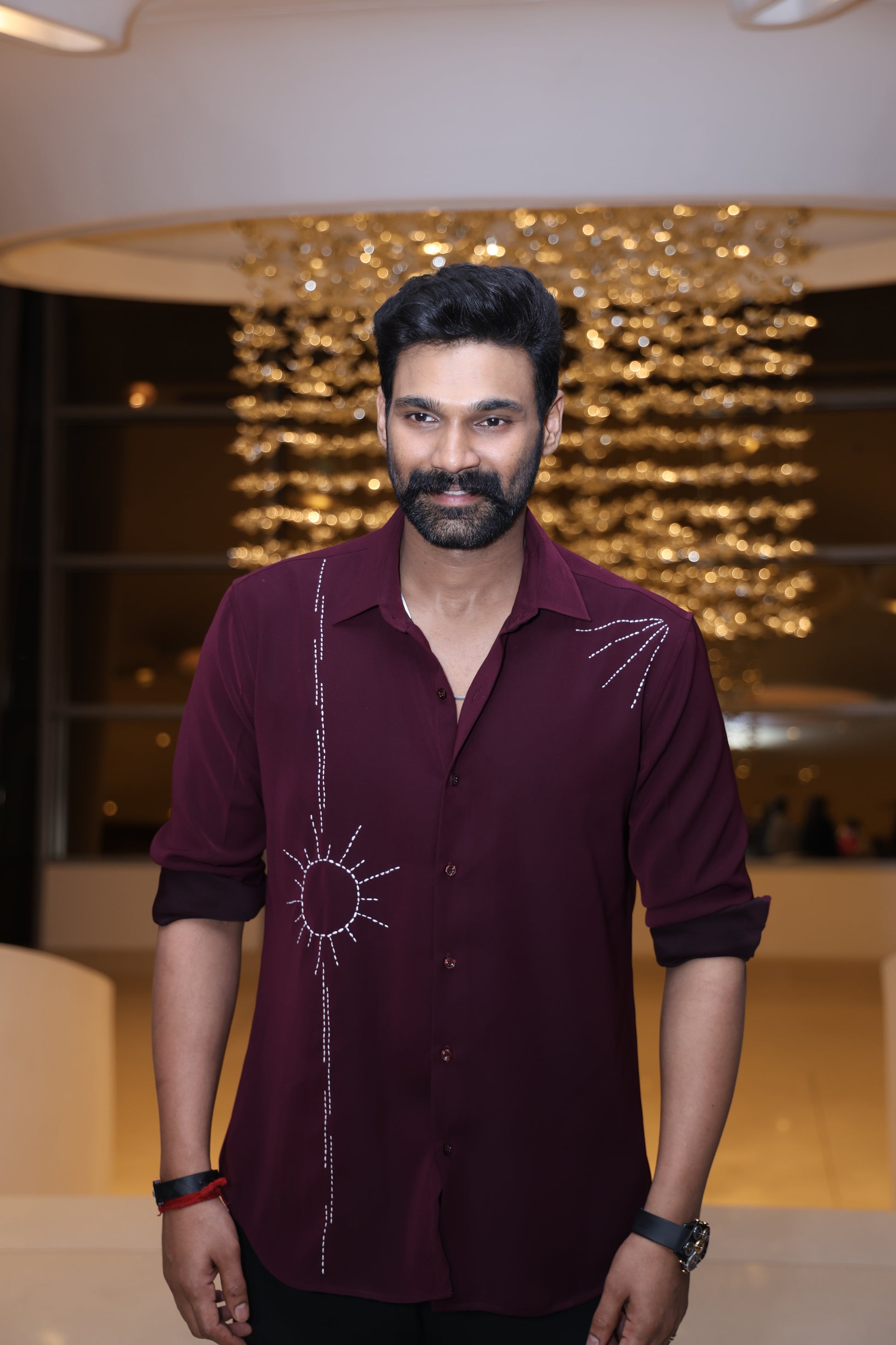 Elevate your wardrobe with our stunning Maroon Embroidered Shirt, designed for the modern gentleman with a flair for sophistication. Crafted from premium satin fabric, this rich maroon shirt features intricate white embroidery, including a striking sunburst motif and delicate cross accents on the chest