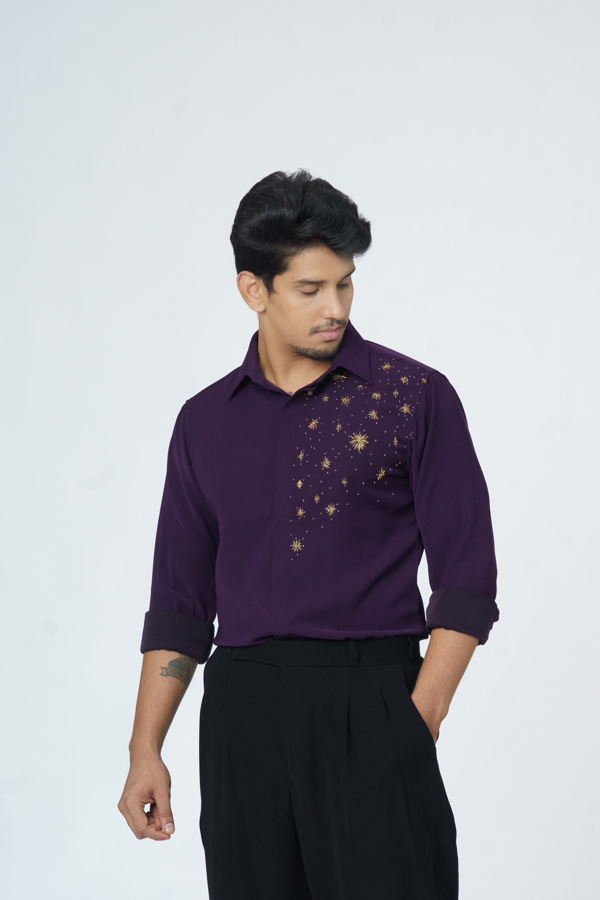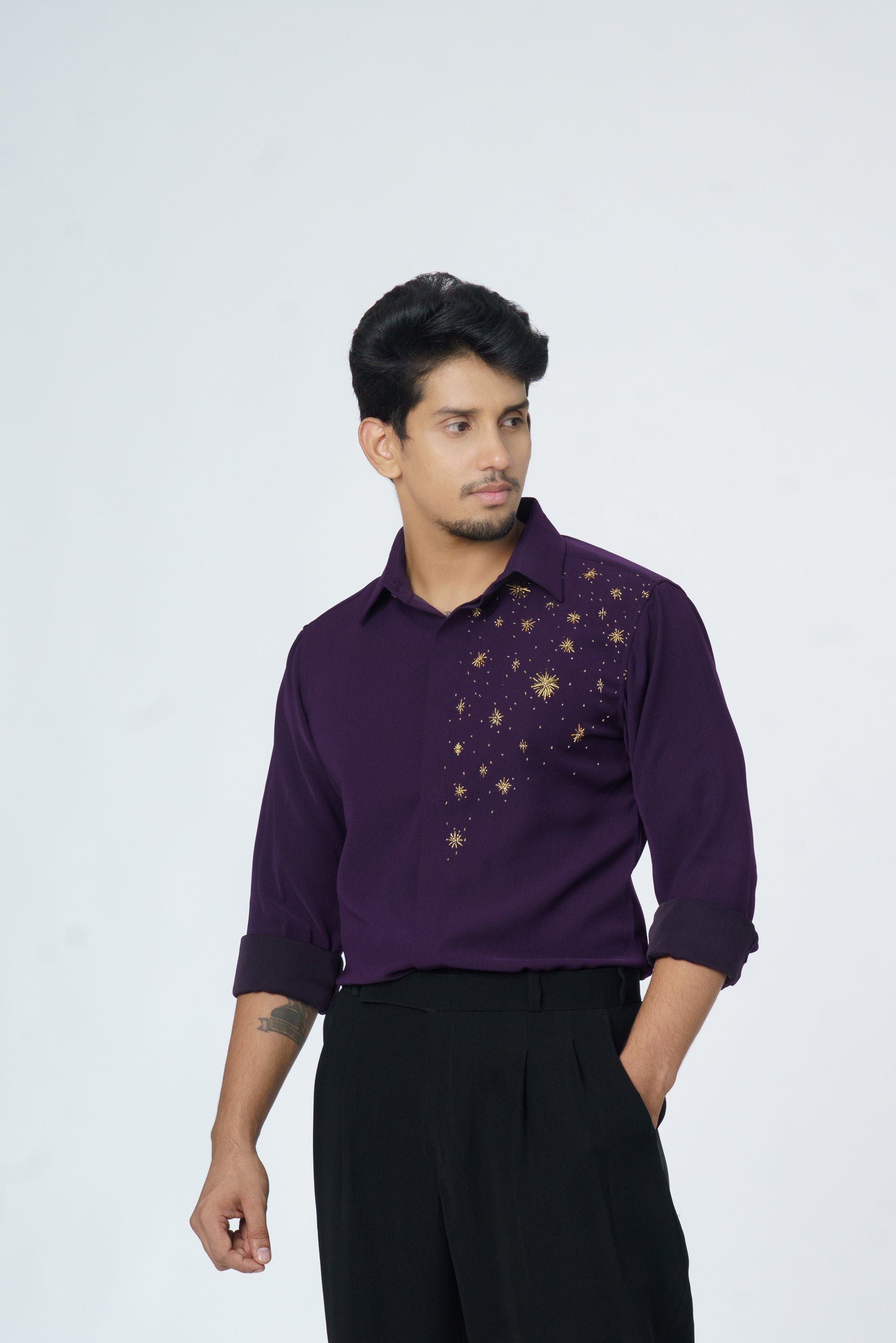 Dark Purple shirt with Gold Star embellishment